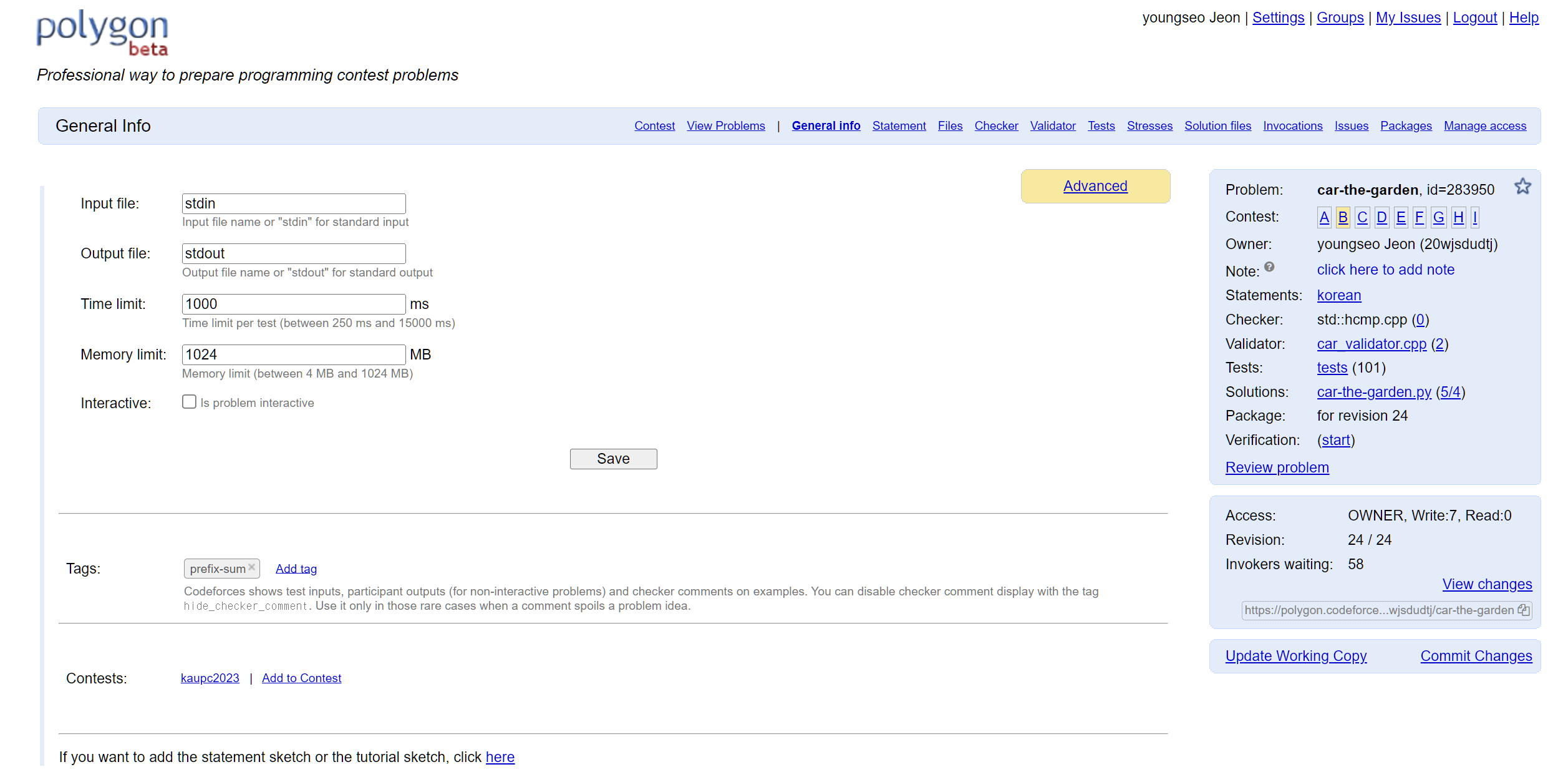문제는 Polygon을 이용해 만들었고, BOJ Stack에 데이터들, 데이터 검증 코드, 정답 코드를 올려 백준 사이트에서 문제가 없는지 검증하는 과정을 거쳤다.