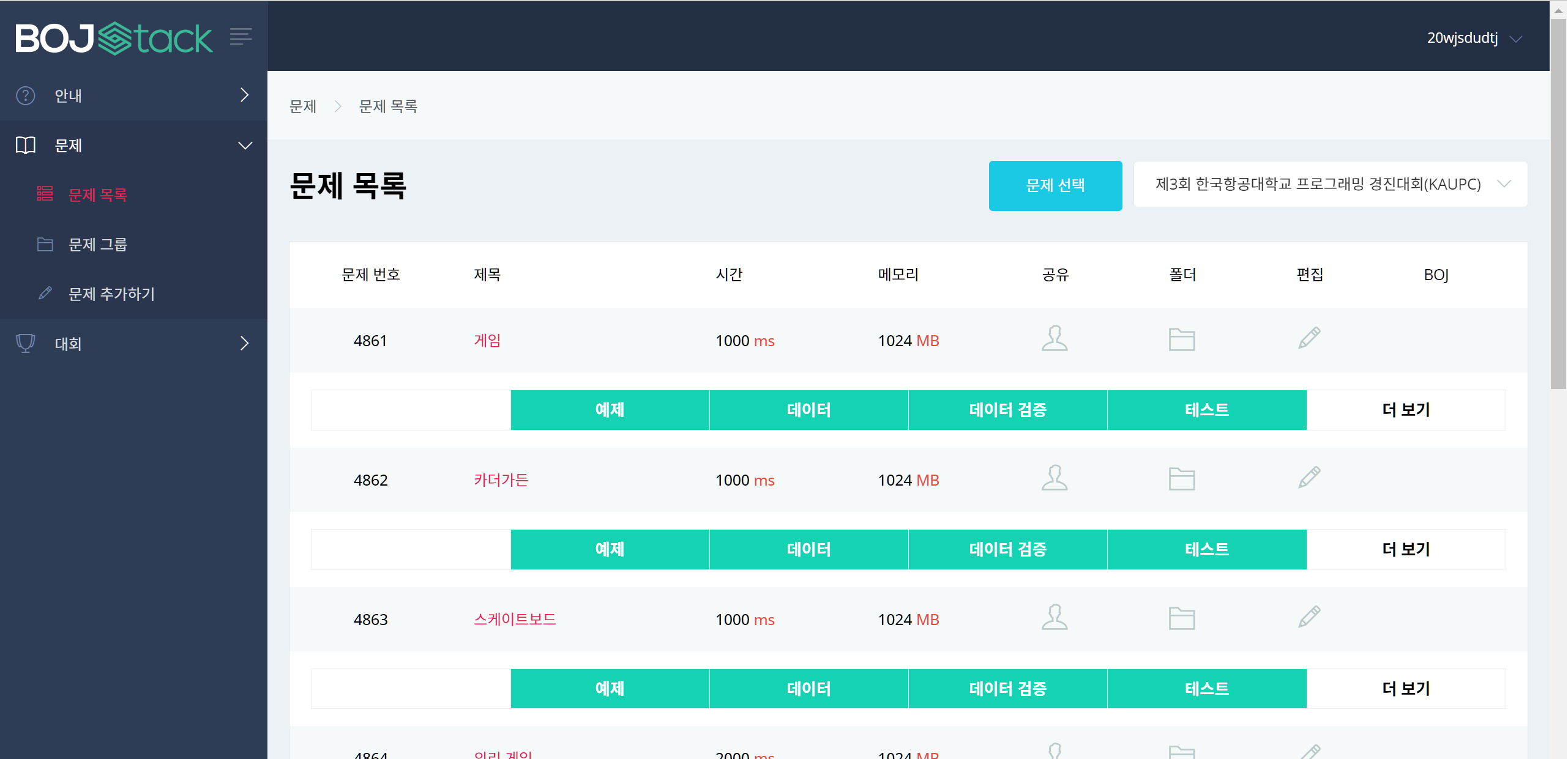 우리 학교는 경인지역 6개 대학 소속으로 매년 SHAKE! 대회에 참여하고 있으며 이 대회에 참여하기 위한 10명의 인원을 교내에서 자체적으로 선발하고 있다. 자체 선발 대회인 KAUPC는 매년 KOALA 동아리에서 주최하고 있으며 이번 년도는 내가 동아리를 운영하고 있어 책임감을 가지고 대회를 주최하게 되었다. 문제 출제를 위해 급하게 500문제를 3달동안 풀었다.
