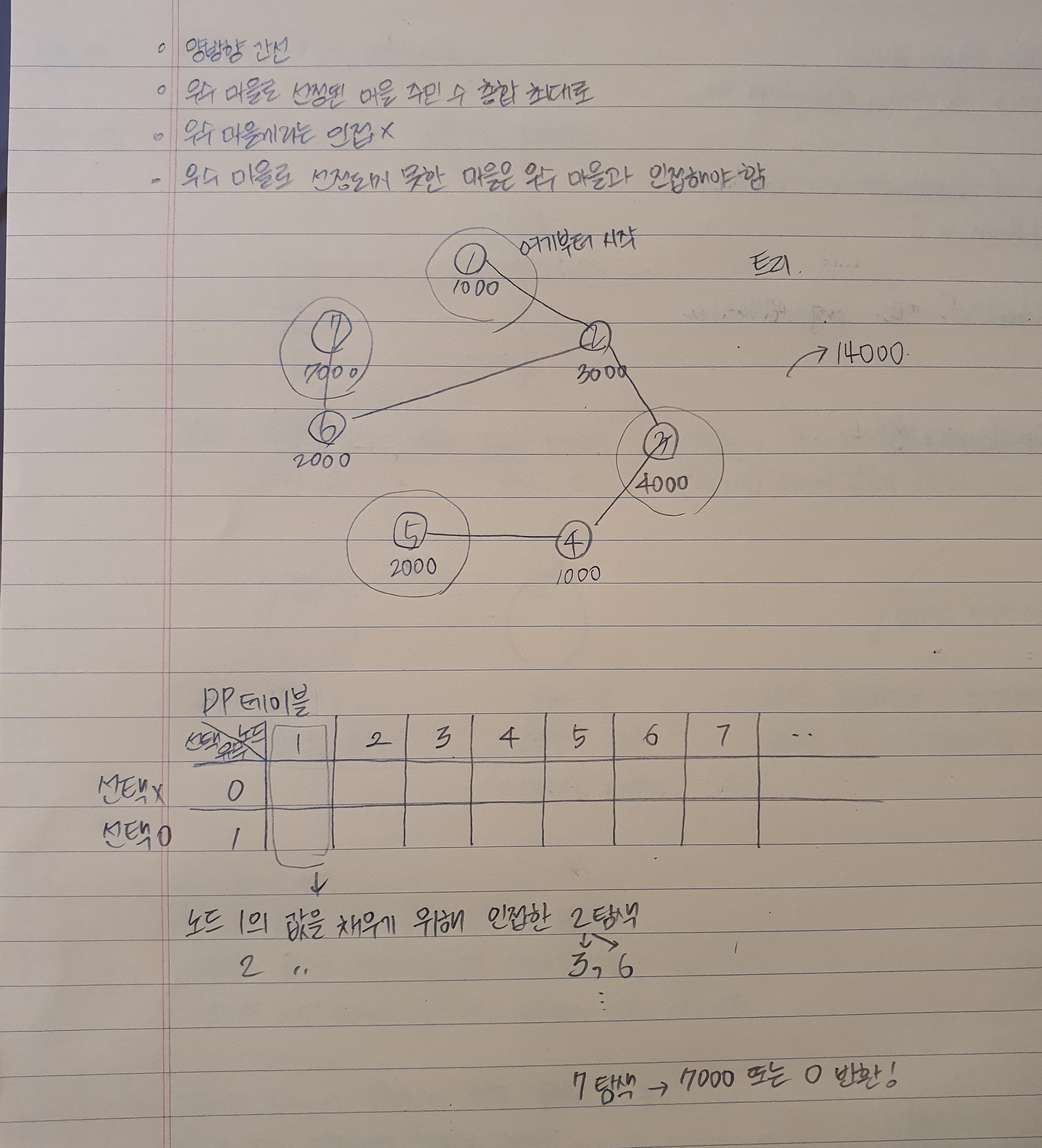 DFS+DP 로 트리에서의 DP를 해결할 수 있고 아래처럼 DP 테이블을 채우기 위해 계속해서 인접한 노드를 탐색하는 점에서 DFS가 강력하다!