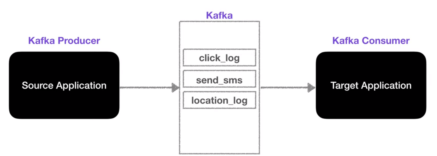 - 메시지를 전송하거나 소비할 때 Topic을 반드시 입력한다.