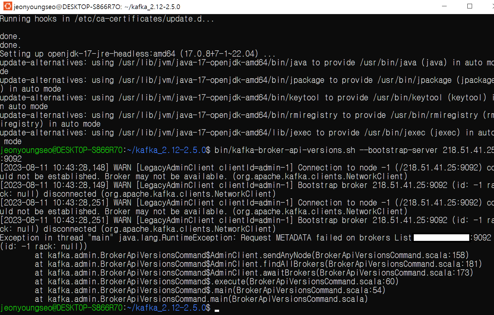 bin/kafka-broker-api-versions.sh --bootstrap-server [Your Host IP]:9092
