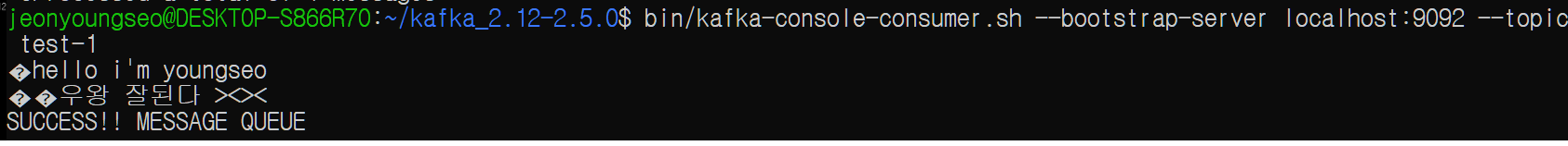 consumer를 만들어 실행시키면 아래와 같이 메시지들이 도착하게 된다!