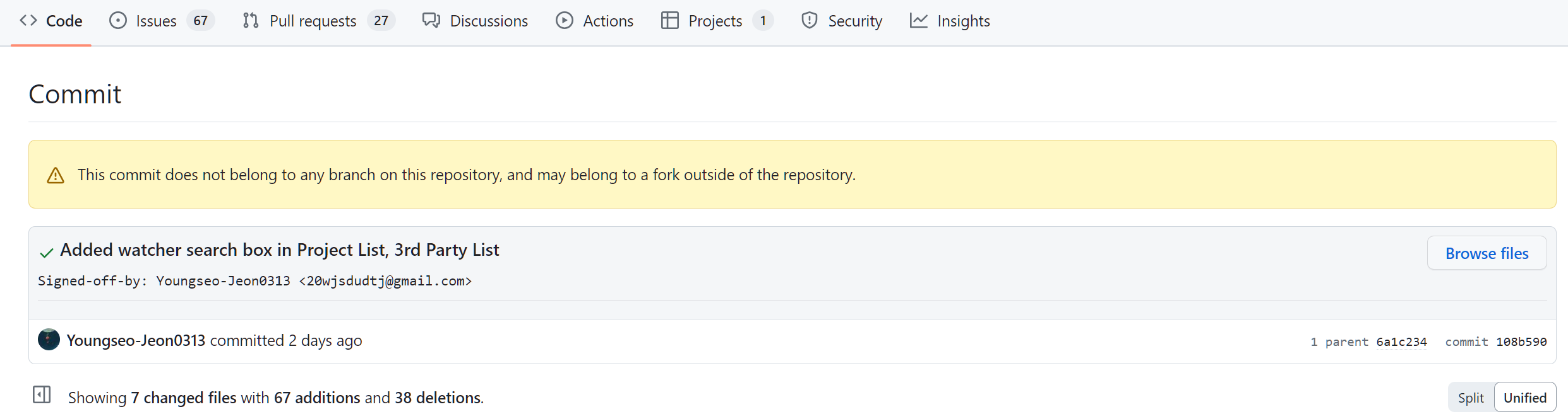 다음과 같이 깔끔하게 나의 커밋 하나만이 추가되었음을 볼 수 있다!