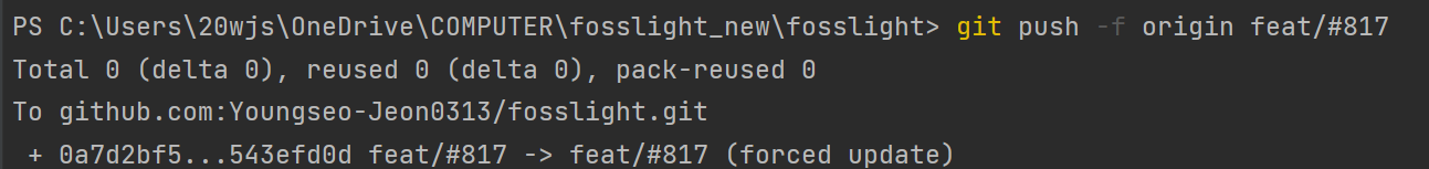 이후 -f 로 push한다.