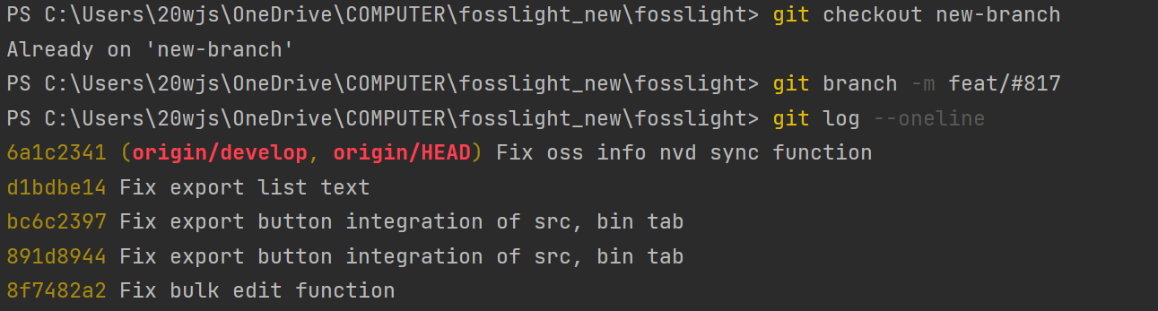 이후 new-branch의 이름을 기존 PR을 날렸던 feat/#817로 변경한다.