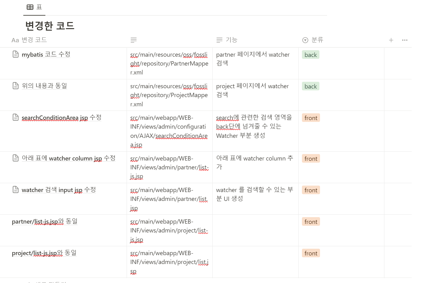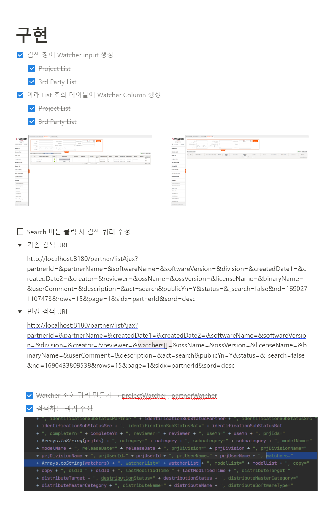 내가 맡았던 이슈는 위의 사진처럼 검색을 할 때 Watcher 값도 입력 받아 검색 결과를 조회하는 것이었다.