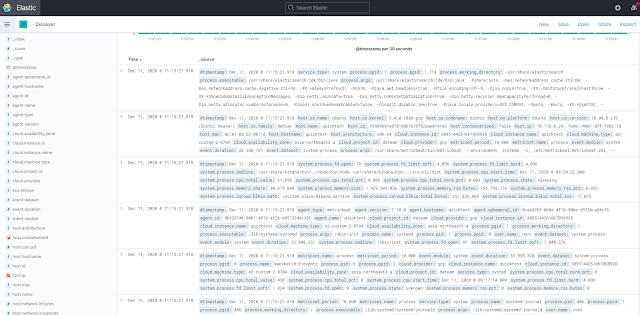 8. kibana Discover 메뉴에서 해당 인덱스를 검색하면 클러스터에 저장되는 data가 잘 도출됨을 확인할 수 있다.