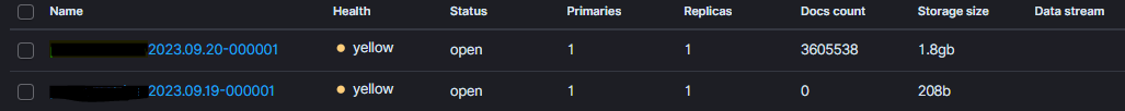 추가로 index당 age를 자세히 보고 싶다면 아래와 같이 format을 할당하여 하루마다 바뀌는 index를 확인해 볼 수 있다. 아래 사진에서 -000001은 위에서 우리가 지정한 rollback에 따라 000002, 000003 ... 으로 증가하는데 index의 크기가 50gb가 넘지 않아서 아래 날짜에서는 롤백하지 않았다.