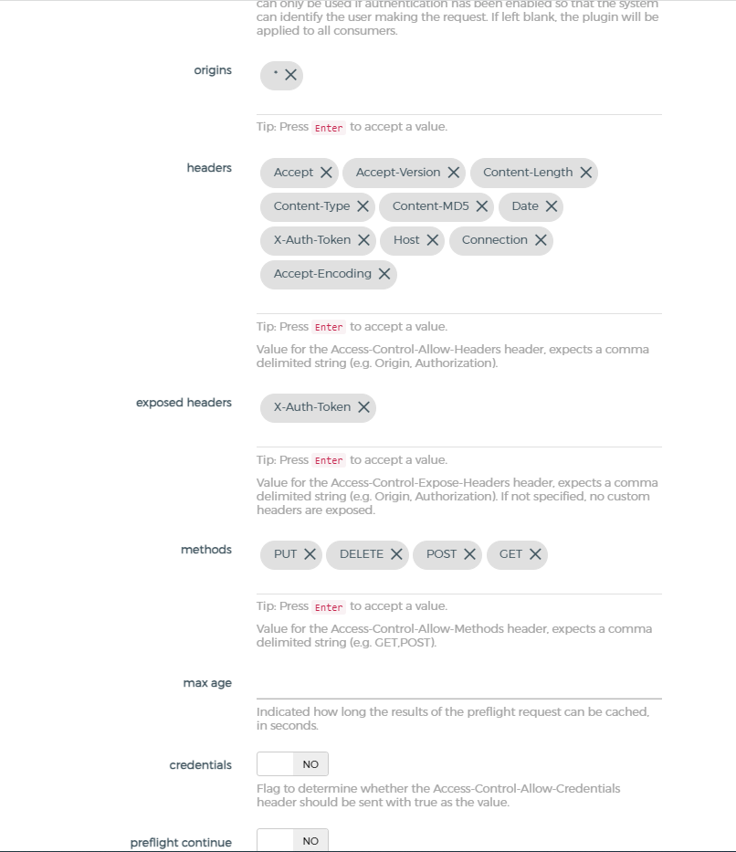 KONG DOCS를 이용하여 기본적인 Cors 설정을 해줄 필요가 있다.