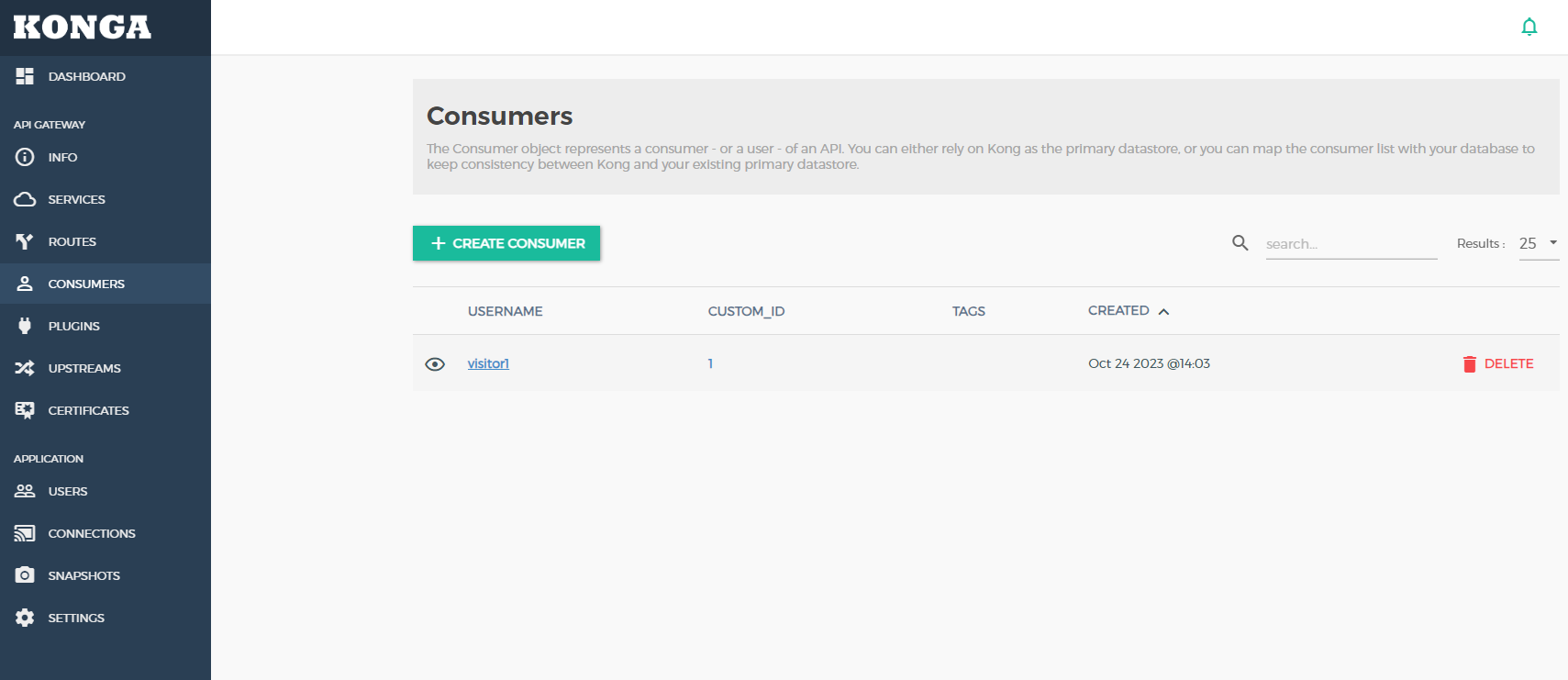 우선 다음과 같이 Consumer를 설정한다. visitor1이라는 이름을 가지는 user를 하나 만들었다.