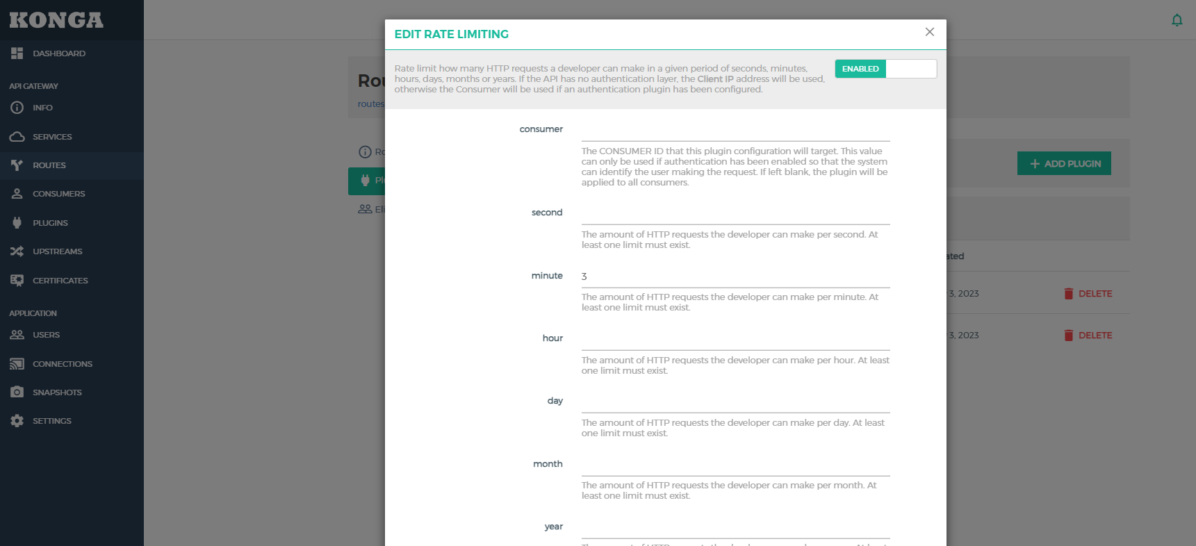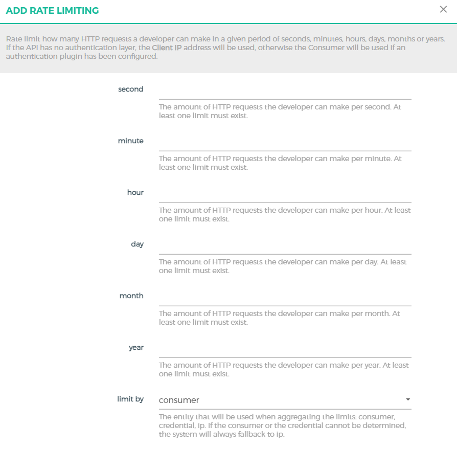 속도 제한 플러그인은 요청이 시간당(초당, 분당, 시간당) 몇 회의 요청을 허용할지 설정할 수있다. 만약 분당 5회 규칙으로 설정했다면 이를 초과할 시 해당 API 서버에 대한 후속 요청을 허용하지 않는다. 대신 429 Too Many Requests 응답을 줄 수 있다. - Traffic Control - Response Rate Limiting