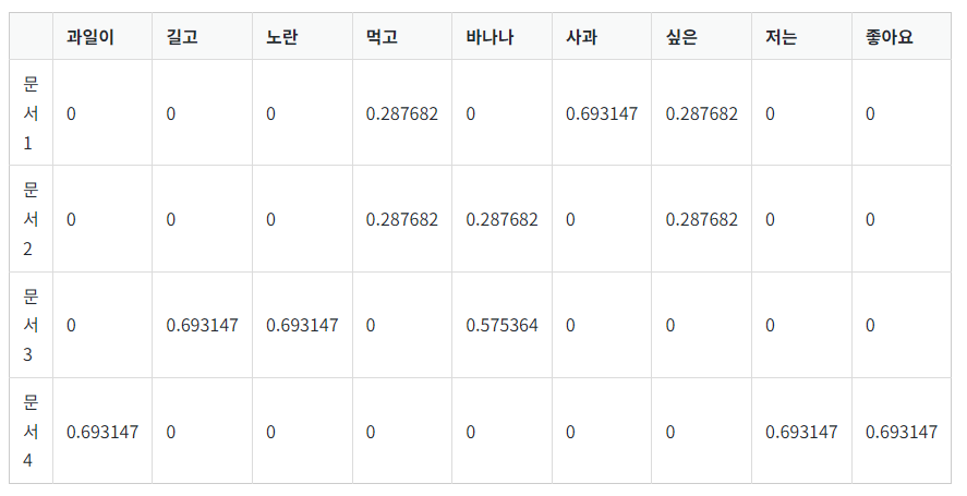 # TF-IDF 행렬에서 현재 문서의 비영행렬 요소 추출