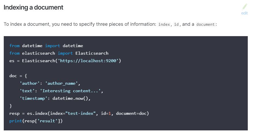 ES에 파이썬으로 적재하기 위해 ES 문서나 파이썬 문서를 참고하였다.