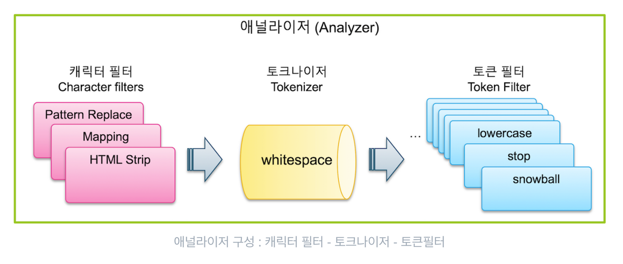 알고보니 이런 과정들을 거친다고 한다. '캐릭터 필터'에서 필요없는 단어들(불용어)을 제거해주고, 토크나이저에서는 일정 기준에 따라 문장 속 단어들을 Term이라고 한다. 이 Term을 기준으로 한 테이블 형식을 만들어준다. 토큰 필터에서는 해당 term들을 이용해 이 테이블을 가공한다. '안녕하세요', '안녕하십니까'를 묶어서 '안녕'으로 처리해주기도 하고(접미사나 어미를 뺀다), 또는 이 둘을 각 테이블로 넣되 동의어로 간주하여 Synonym Token Filter을 사용해 처리하기도 한다.