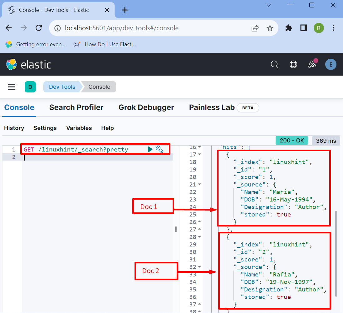 Dev Tool을 이용해 조회해보면 잘 색인되는 것을 볼 수 있다. (아래는 참고 이미지)