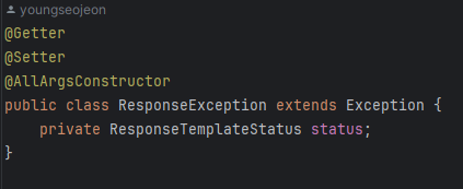 그렇다면 내가 적용한 Transaction에 대해 살펴보자. 나는 Exception 클래스를 상속한 ResponseException을 사용하고 있다.