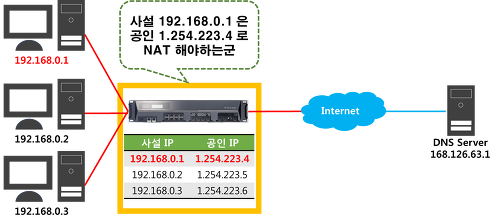 내 컴퓨터로 요청이 들어왔을 때 우선 공인 IP로 받고, PAT(Port Address Translation) 로 공인 IP -> 사설 IP를 매칭하여 올바른 목적지에 전달해준다.