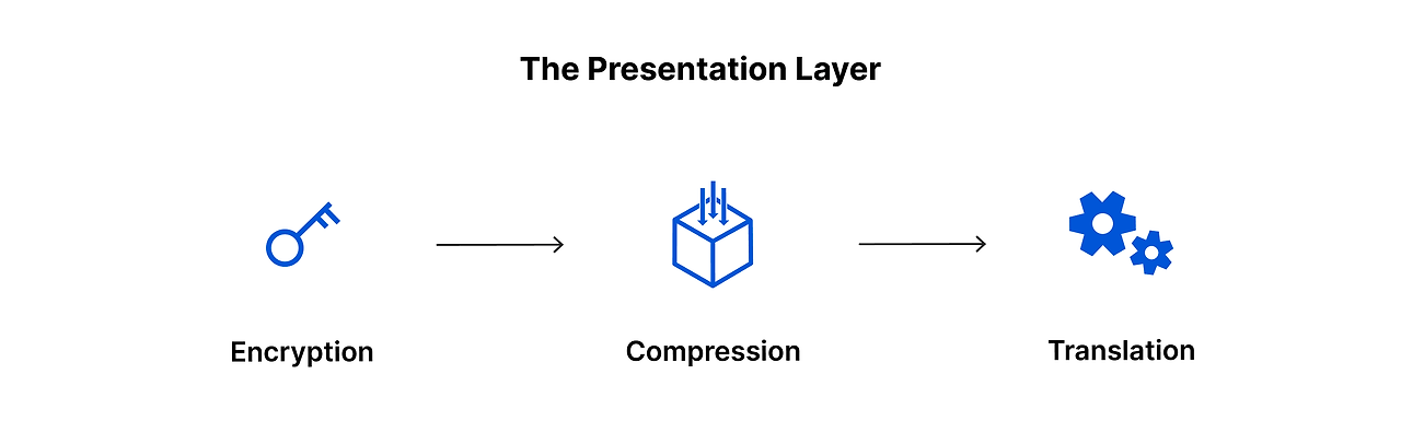 또한 데이터의 인코딩, 디코딩 / 암호화, 복호화 기능을 통해 데이터를 안전하게 전송하도록 도우며, 데이터 압축을 통해 데이터가 더 효율적으로 전송하도록 돕는다.