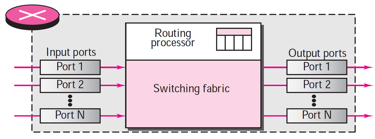 스위치와는 달리 라우팅 테이블을 참조하며 라우팅 프로세서는 목적지 IP 주소를 사용하여 패킷을 어떤 출력 포트로 보낼지 결정한다.