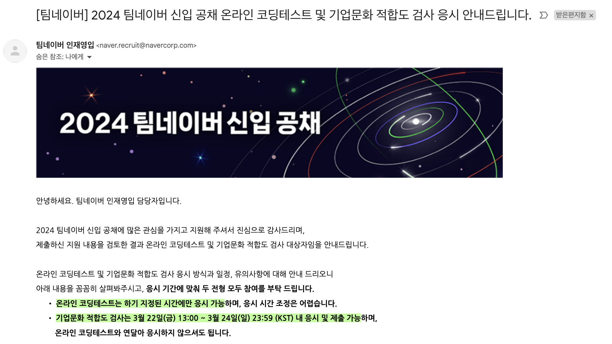 [코딩테스트] 팀네이버 2024 코딩테스트 후기 본문