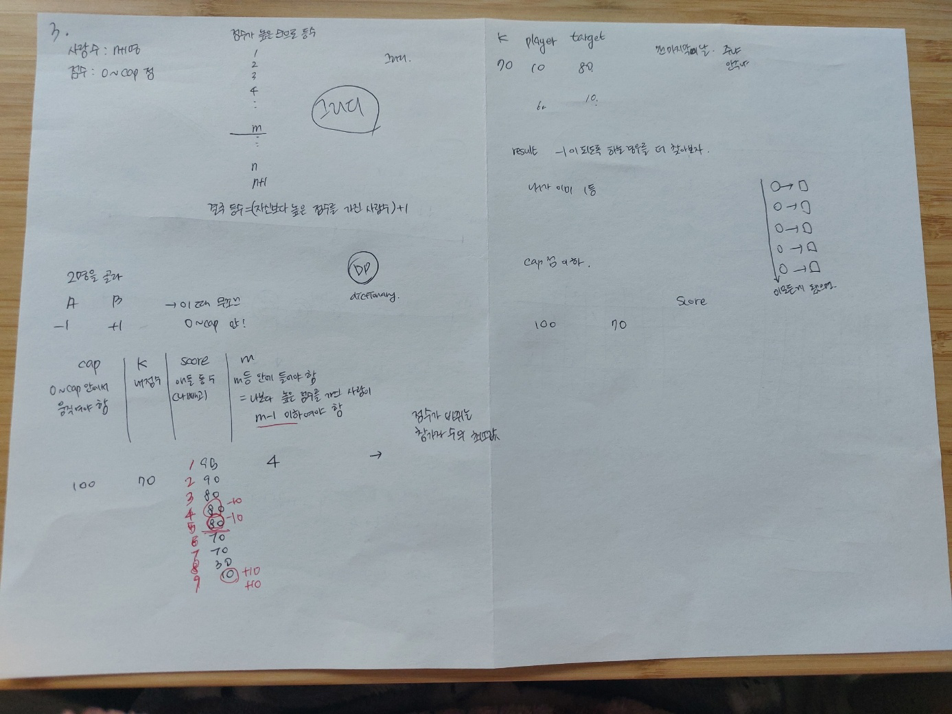 내 등수가 주어진 조건을 만족할 수 있도록 위에 있는 애들을 밑으로 끌어내리는(?) 문제이다. 결국 내 위에 있는 애들부터 차례대로 점수가 가장 낮은 애들에게 점수를 배치시키는 그리디 구현 방법으로 해결할 수 있다.