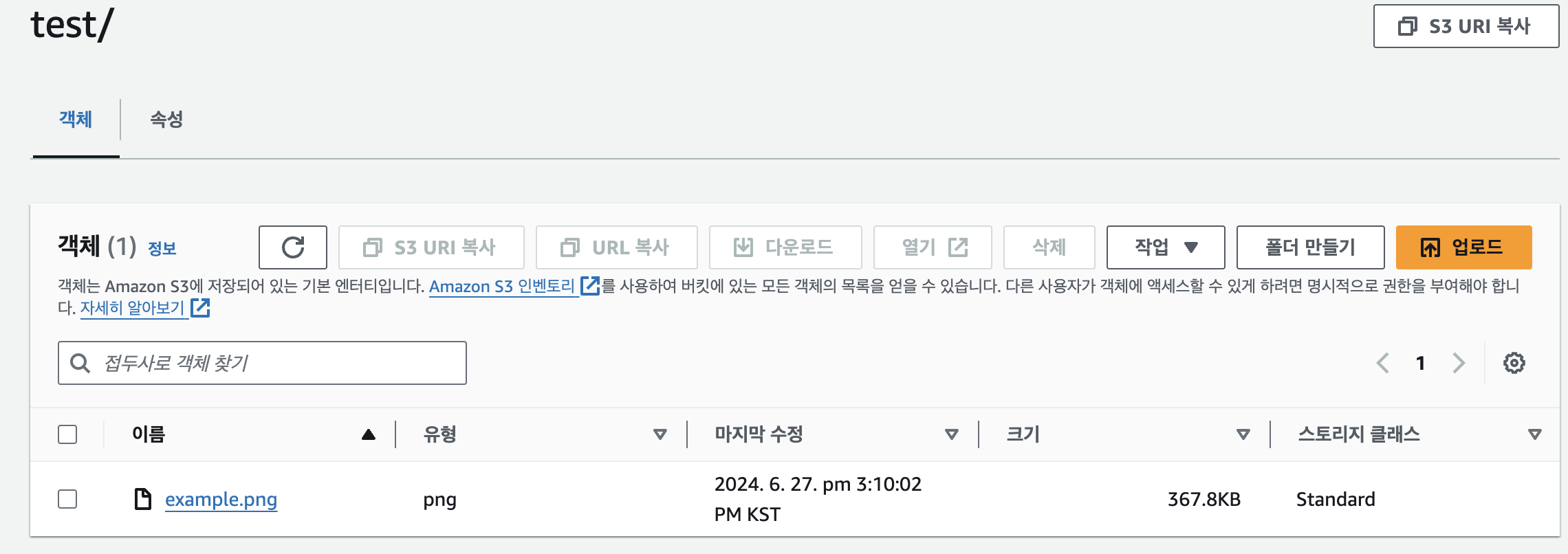 바로 S3에 잘 업로드되는 것을 볼 수 있다.