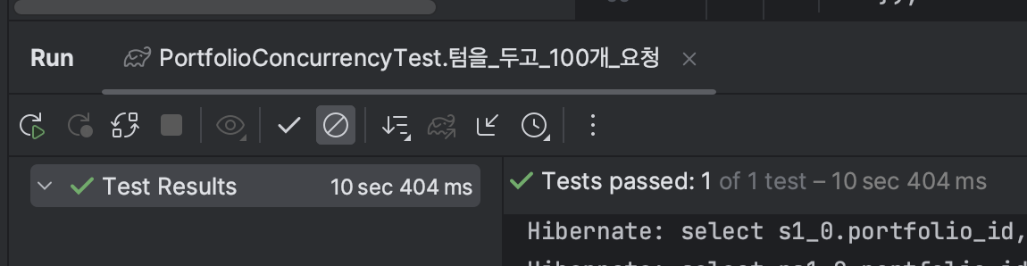 그러면 이번에는 java의 동시성 관련 클래스(ExecutorService, CountDownLatch)를 이용하여 멀티쓰레드 환경을 구축하고 동시에 100개의 요청이 한 번에 들어오도록 테스트해보자.