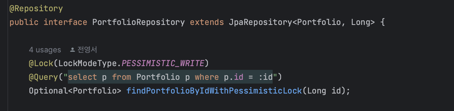 portfolio = portfolioRepository.findById(1L).orElseThrow();