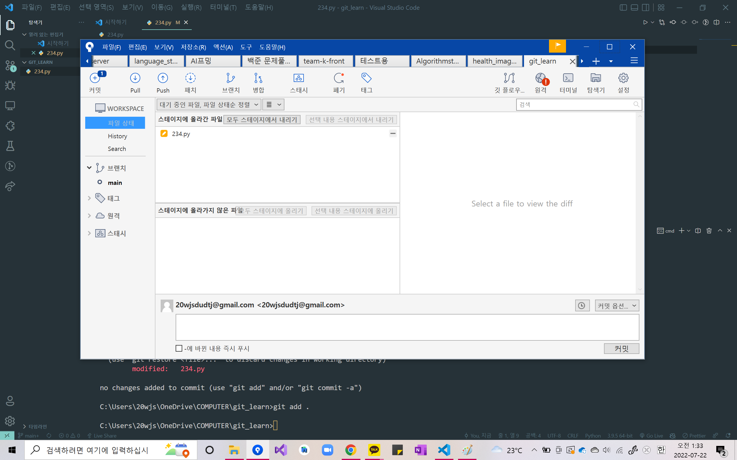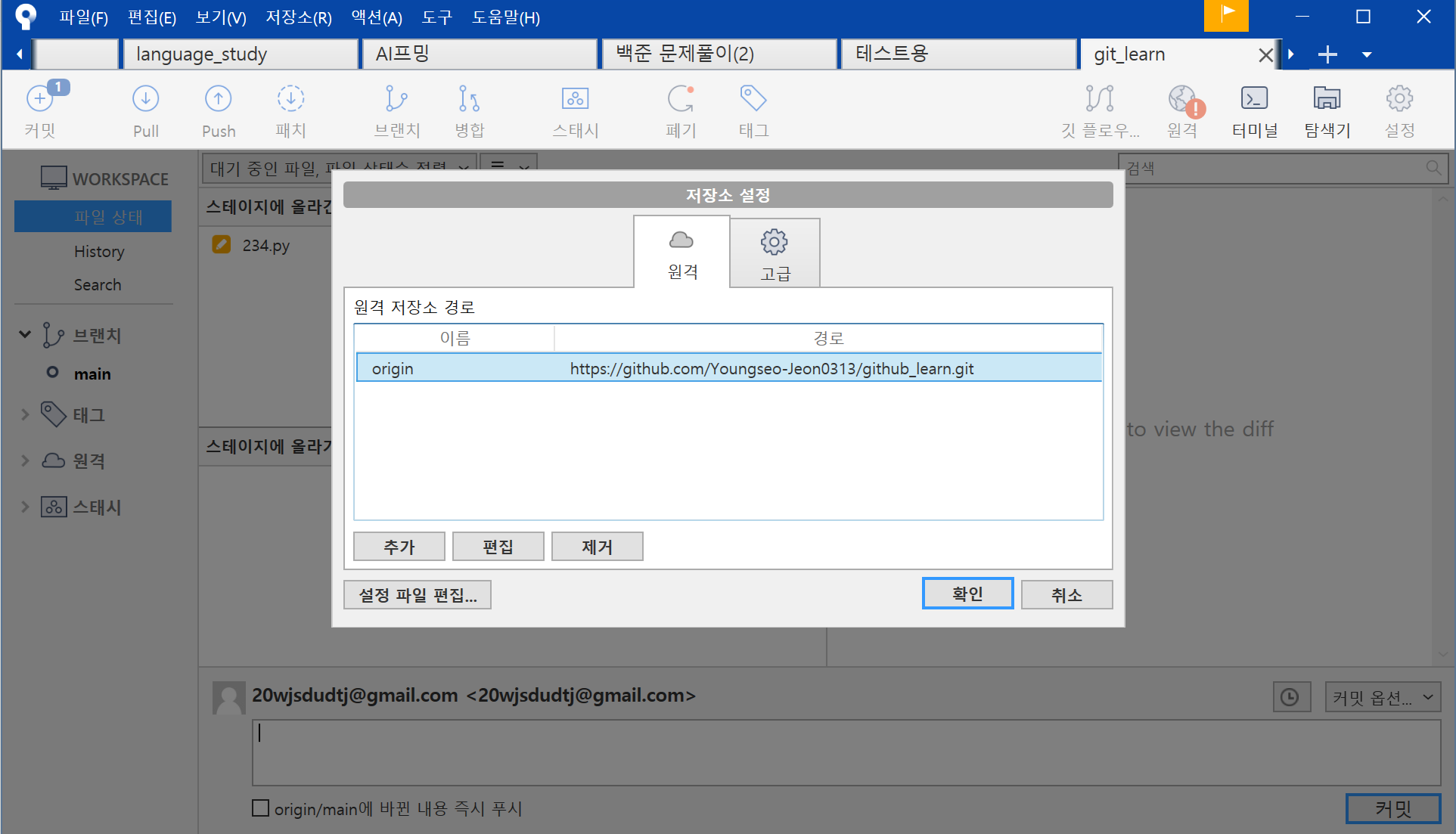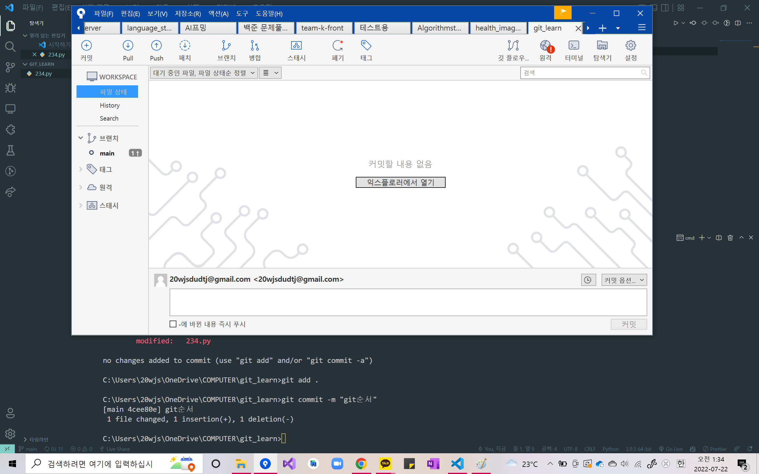 결국 해결은 sourcetree를 깔아서 해주긴 했지만.. 그래도 한 번 정리를 해놓으면 좋을 것 같다!!!