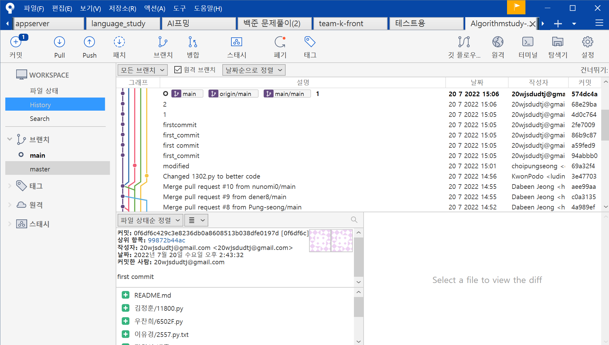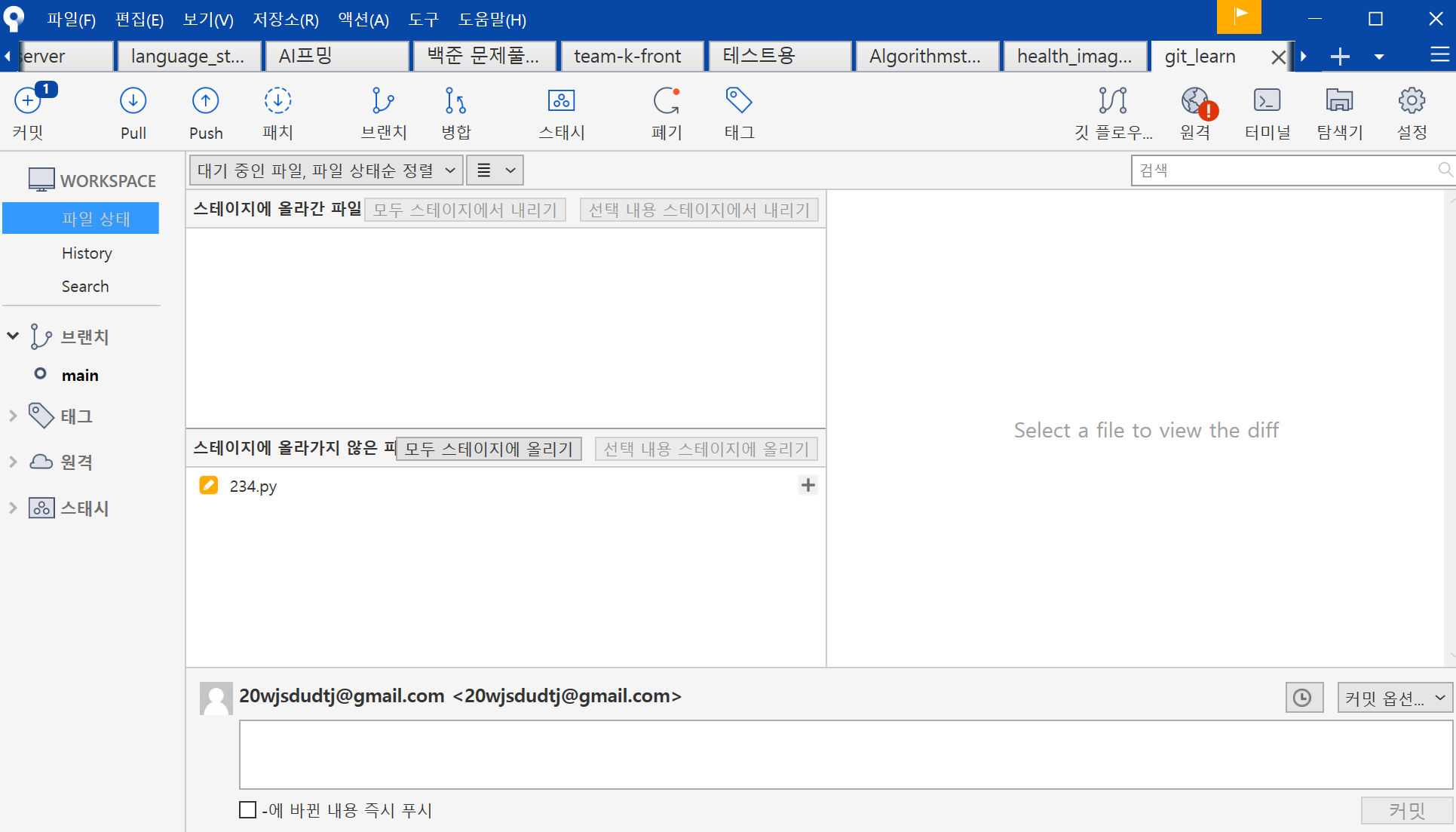 이 때 git diff 오류 주의!!(나중에 다뤄보기로..)