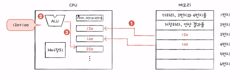 -메인메모리-- 메인 메모리에 올라와있는 명령어를 CPU가 수행한다.