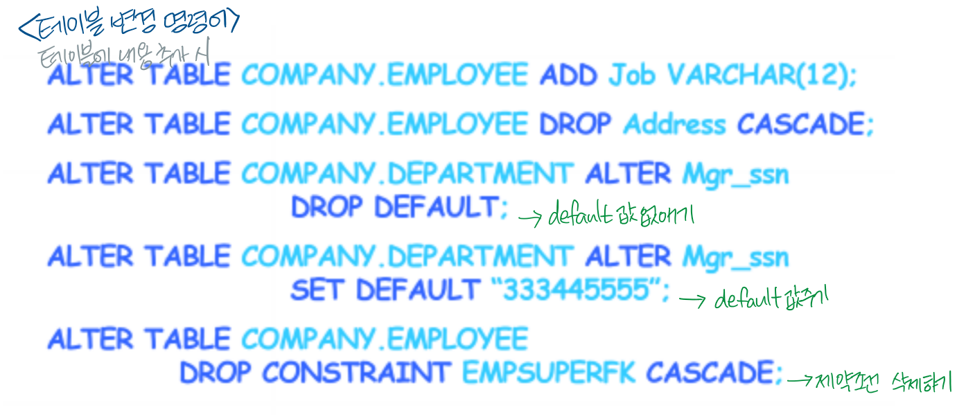 UPDATE는 attribute값 업데이트하고 ALTER은 정보 변경 및 수정이다. 둘 구분*************