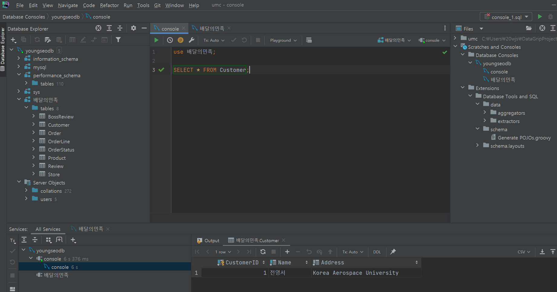 너무나 간단한 sql문이다.. 이렇게 table들을 여러개 만들고 DummyData를 만든 후 sql문으로 데이터를 확인해보았다.