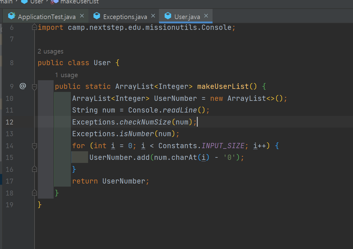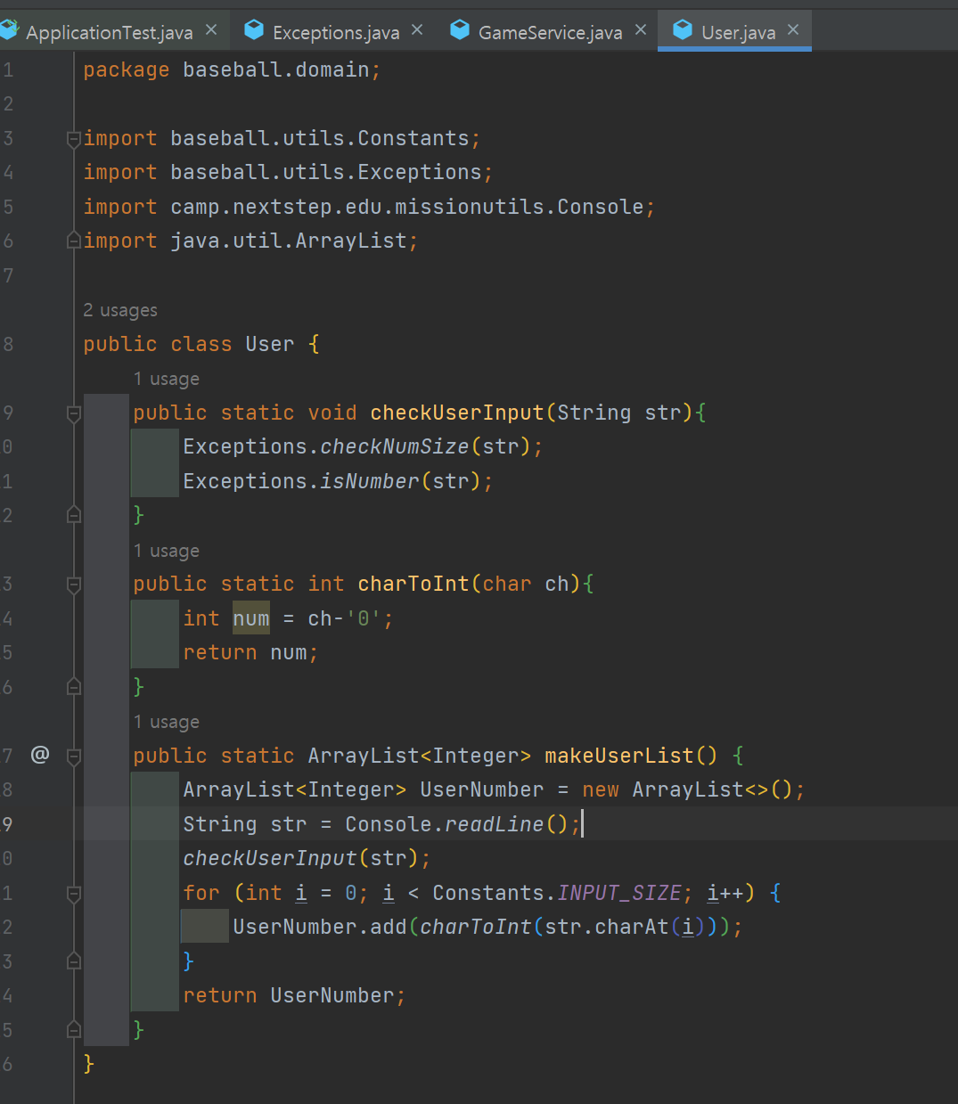 4. 확인이 되면 UserNumber라는 ArrayList에 아스키코드를 이용해서 하나씩 집어넣는다.