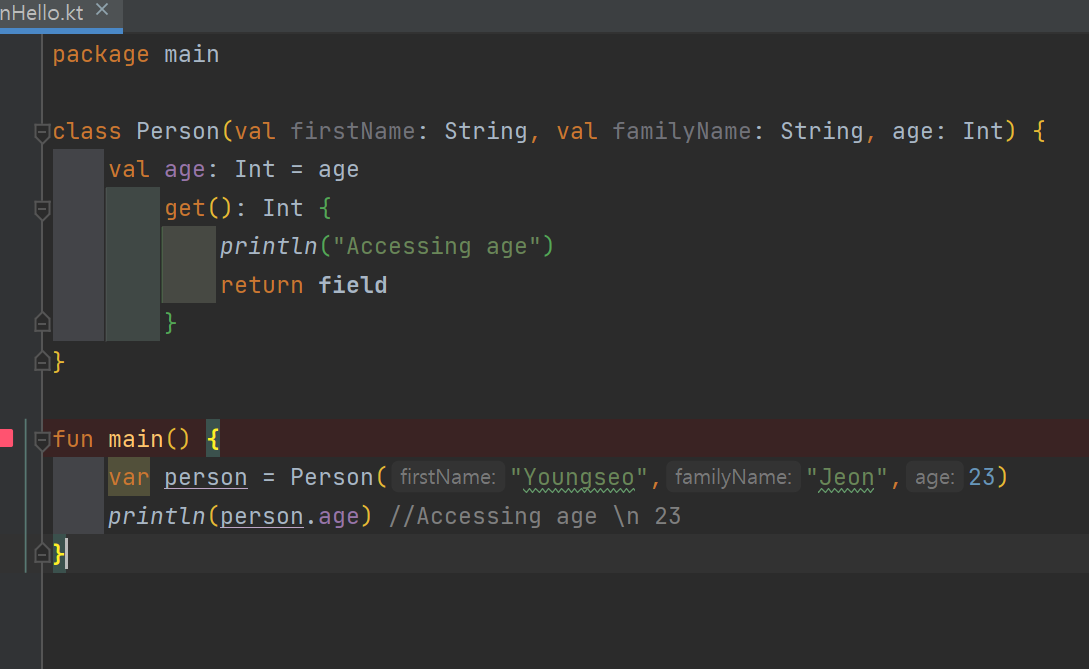 - 메모리관련 프로퍼티(상태, 생성자) val age = 0 , return field 이런 거 안됨