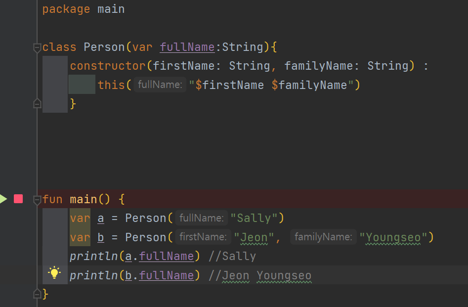 주생성자 파라미터로 class Person(override val name: String): Entity() 이런 식으로 상속 가능 - 불변 프로퍼티를 가변 프로퍼티로 상속 가능