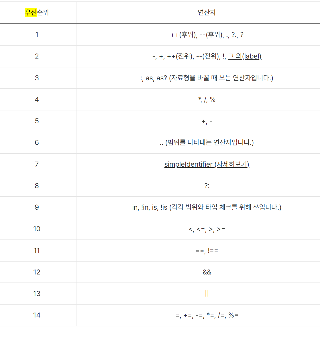 <연산자 우선순위>