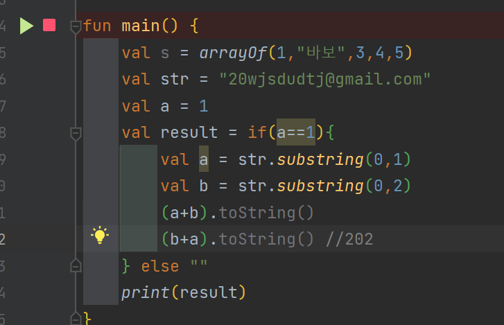 컴파일 시에는 변수의 타입에 맞추어 연산 검사를 수행한다. 1,"2" 가 있으면 *2를 할 시 error - is Int -> ok. 자동 스마트 캐스트