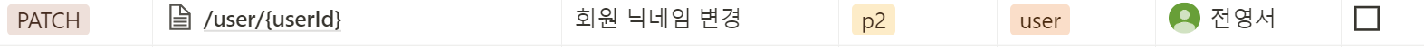 위 API에서 3번째 기능인 회원 닉네임 변경 기능 API를 살펴보자.