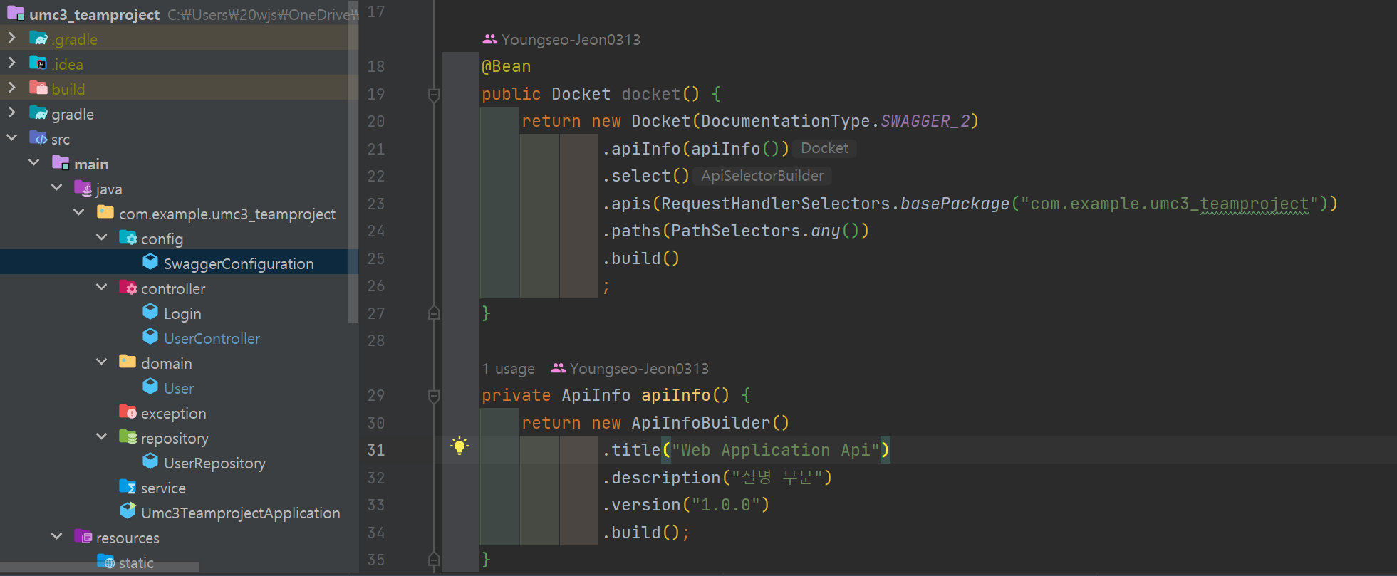 (로직은 직관적이다. 검색으로 봐도 어렵지 않다. YOUTUBE에 swagger java 검색키워드로 찾아보면 이해가 빠르다)