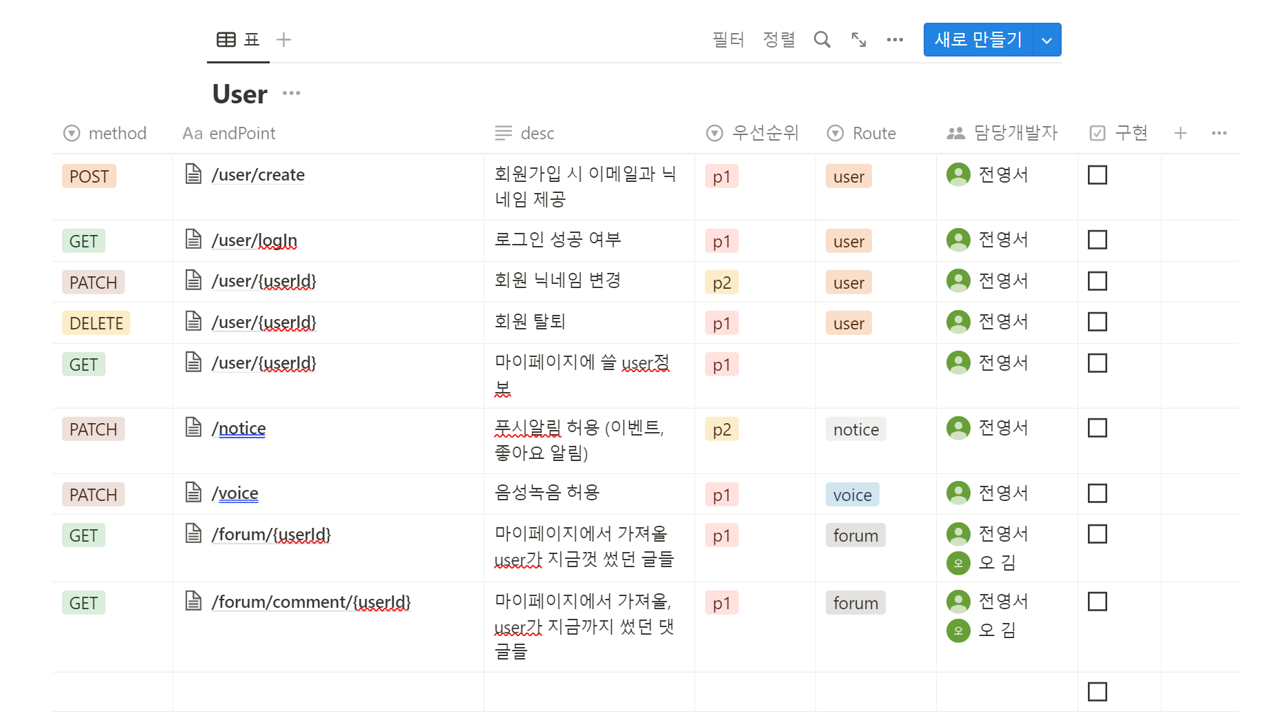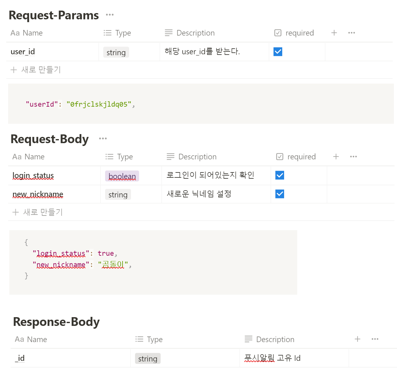 front와 협업을 하는 것이기 때문에, 구현 완성도 중요하지만, 구현 전에 API의 request / response를 잘 정리해서 주고받기로 했다.
