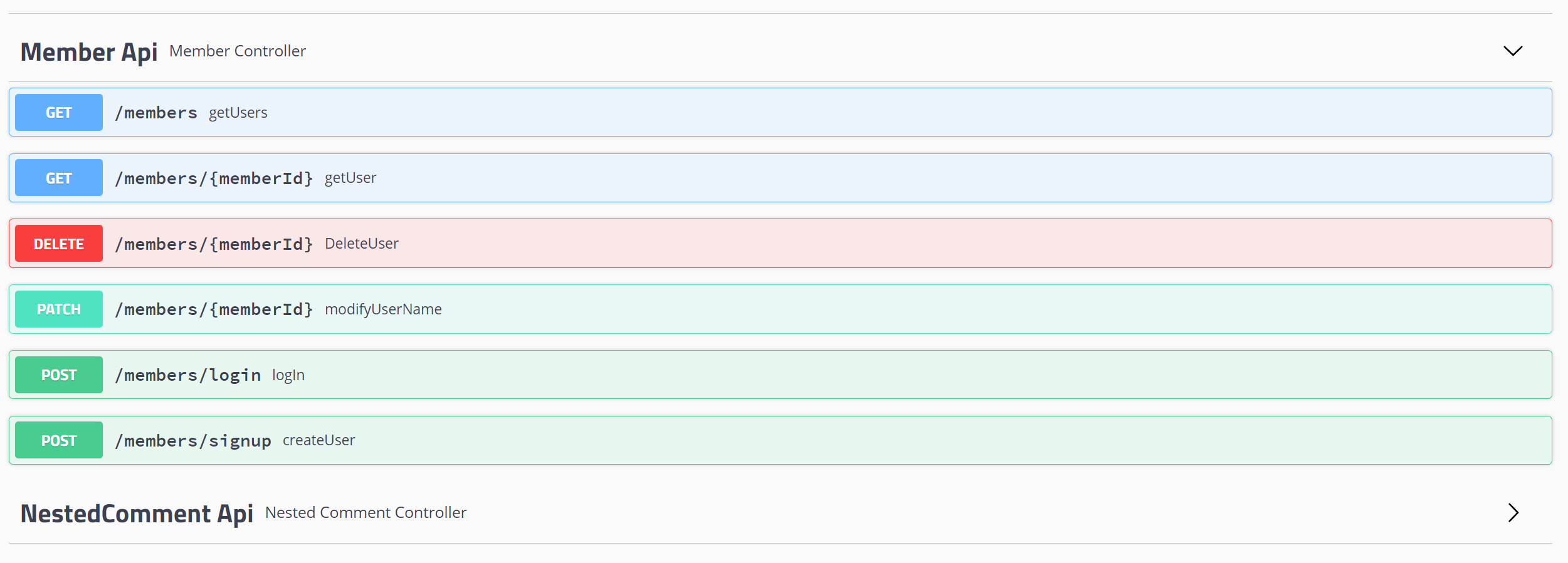 api를 누르면 어떤 method가 있는지 확인할 수 있고,
