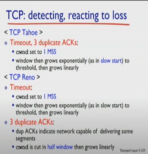 TCP Tahoe일 때와, TCP Reno일 때 cwnd를 조절하는 방법이 각각 다르다.