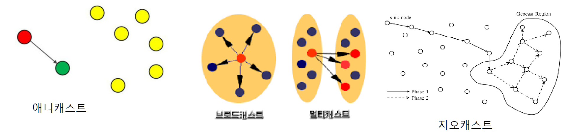 하나의 송신자로부터 전송되는 데이터그램을 토폴로지 상의 동일한 IP를 갖는 수신자 그룹 안에서 가장 가까운 노드로 연결시킨다. - Geocast