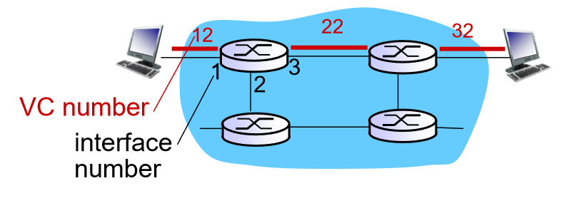 송신-수신 간 마치 전화기처럼 작동한다. 전화 통신에서 전화번호를 돌리고 누군가 수화기를 들어 커넥션이 설정되어야 통신이 가능하다. 하지만 통화하는 사람은 전화 통화를 위한 연결 설정이 전화 교환기에서 작동되고 있었다는 것을 알 수 없다. 전화가 성사되기 전에 미리 설정한 경로를 통하여 전송되기 때문이다. VC에서는 포워딩을 위한 수단으로 VC identifier를 사용한다. destination host address X