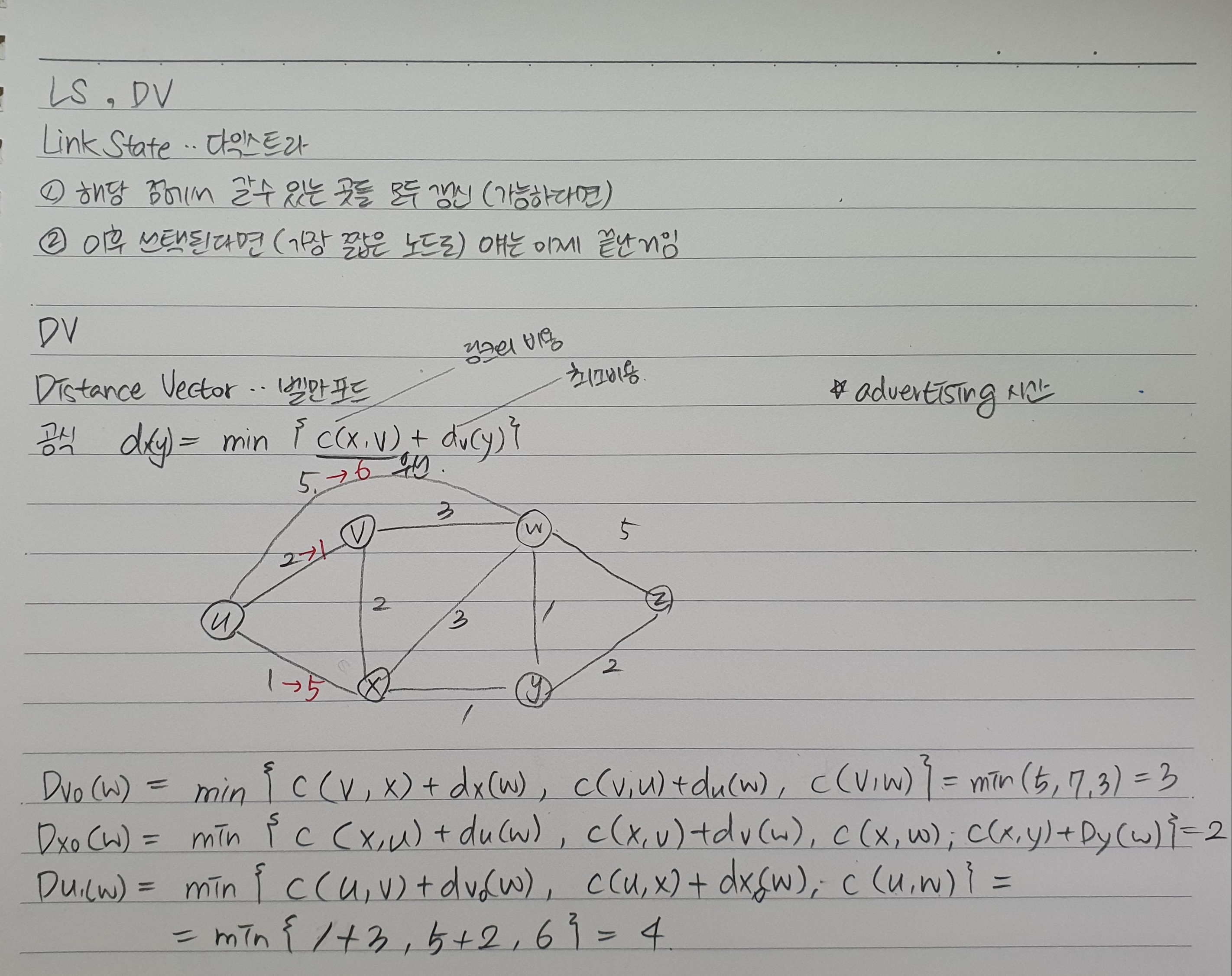 2) 거리 벡터(Distance-Vector, DV) 라우팅 알고리즘