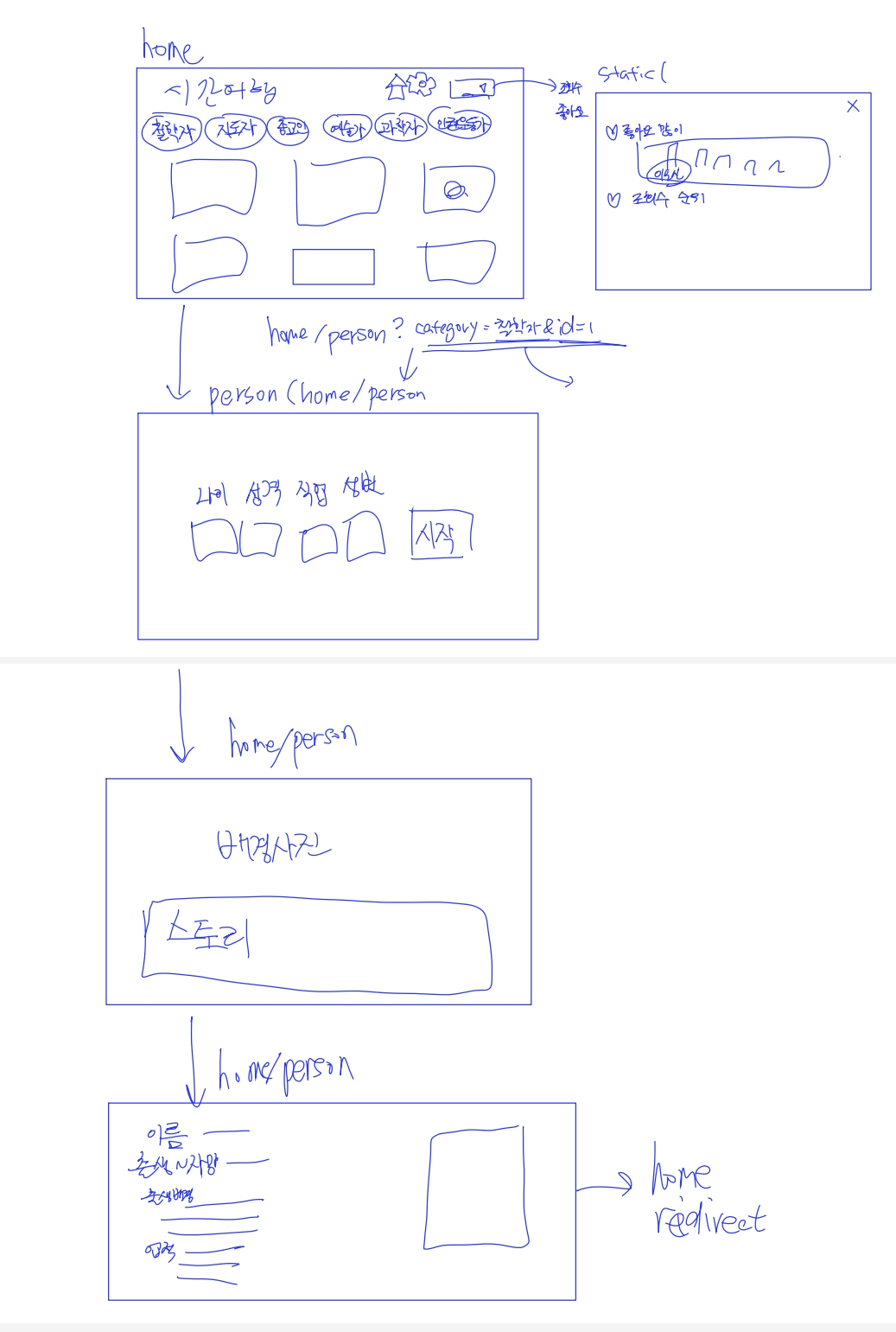 대략적인 와이어프레임을 각자 끄적여본 후 front는 경로 URL을, back은 API에 대한 URL을 작성해보는 시간을 가졌다.