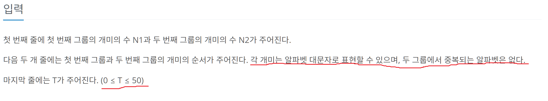 이후 다시 보니 아래의 두 힌트가 명시적으로 N1과 N2가 굉장히 작고 T도 50밖에 되지 않아 빡구현이겠구나 하고 생각하였다.