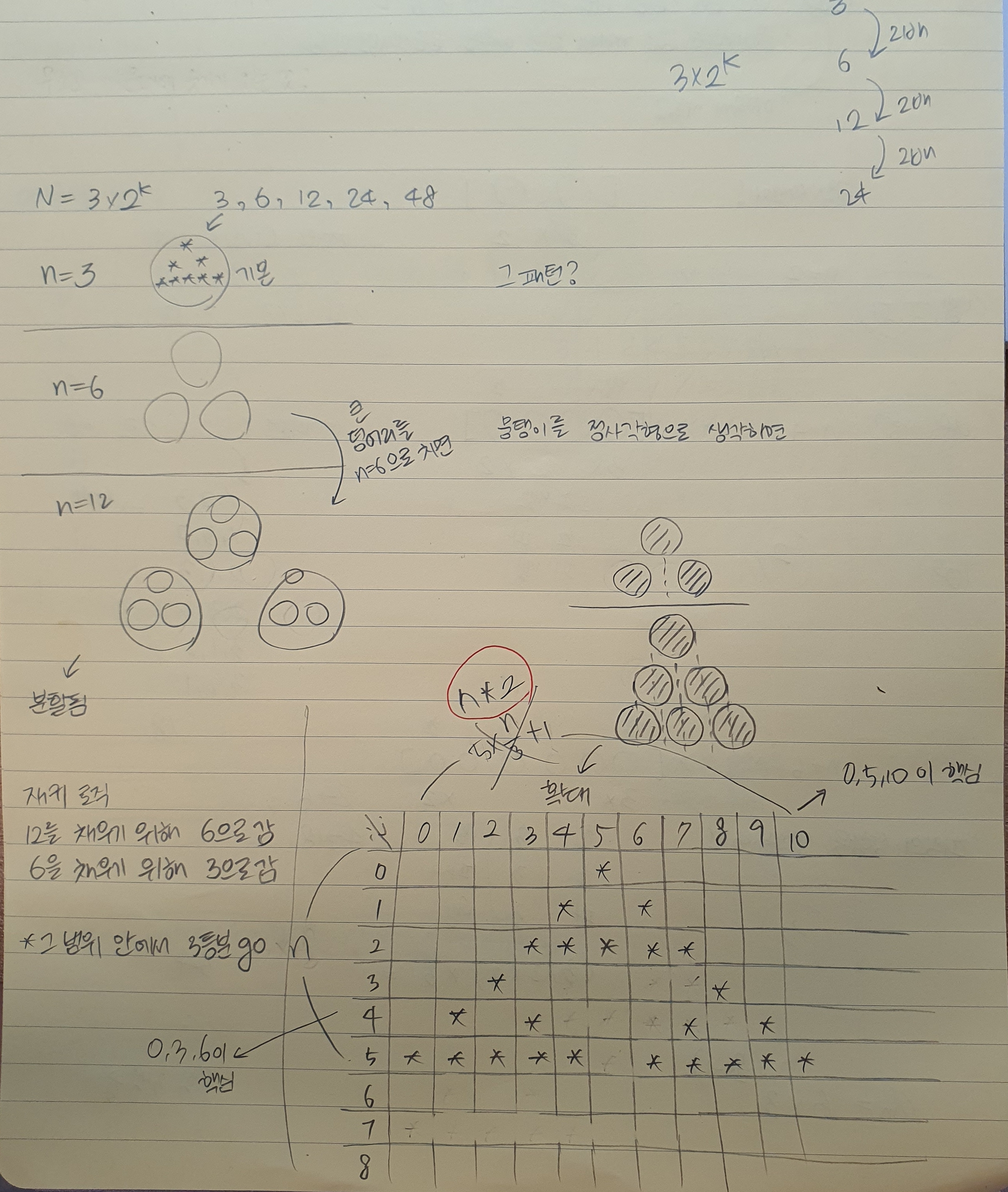 다시 6을 채우기 위해 3으로 쪼개서 나아가는 방법으로 분할정복 재귀를 써야겠다고 생각했다.